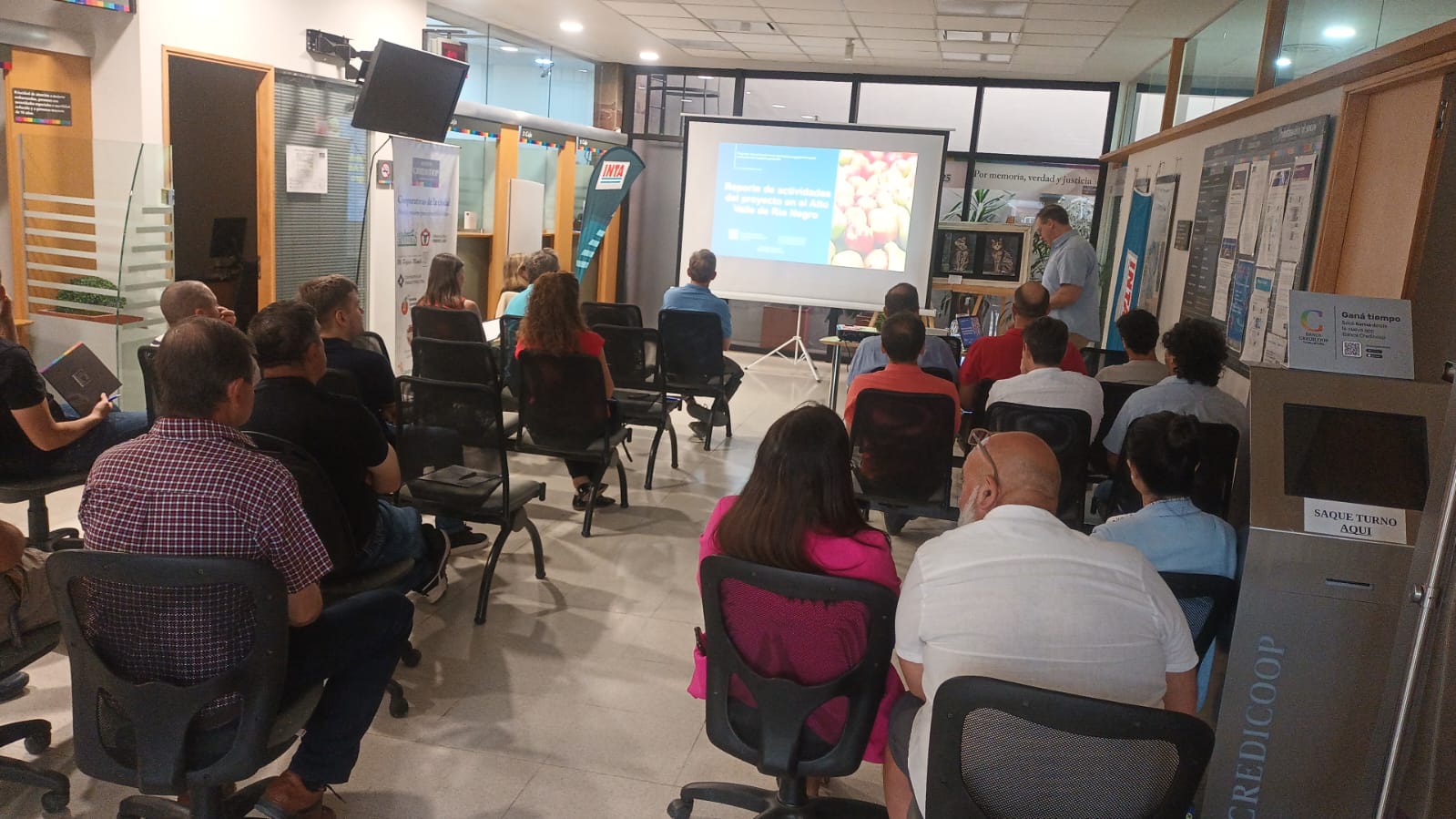 En el marco de las actividades previstas por el proyecto, relacionadas con la difusión y articulación entre productores y entidades que operan en el mercado voluntario de carbono, se realizó una primera actividad para dar a conocer a los productores la situación actual y las alternativas de acción. La misma se desarrolló el pasado 27 de noviembre en la Filial 238 - Gral. Roca del Banco Credicoop CL.